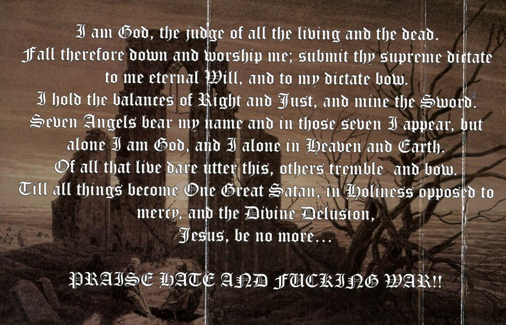 This is pretty straightforward and high quality black metal. Nothing bad to say about it, but nothing original either. 'No Line Up - No Contact - No Website', but two pictures of the guy behind this included?