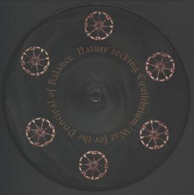 This picture seven inch by Ordo Equilibrio, one of a handful of great dark ambient bands on Cold Meat contains two songs "Nature seeking Equilibrium/War for the Principal of Balance" and "In the grassy fields where the world goes to sleep. We kissed this world Goodbye."
