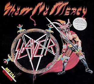 This double LP (Made in England) 1983 special edition of Show No Mercy contains two extra tracks 'Aggressive Perfector' and 'Chemical Warfare and a poster.' The tracks are: 'Evil has no Boundaries,' 'The Antichrist* (Mislabeled with omitted 'The'),' 'Die by the Sword,' 'Fight till Death,' 'Metal Storm/Face the Slayer,' 'Aggressive Perfector,' 'Black Magic,' 'Tormentor,' 'Final Command,' 'Crionics,' 'Show no Mercy' and 'Chemical Warfare.'