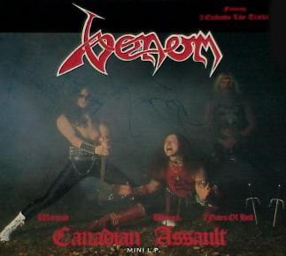 This mini LP contains three exclusive live tracks, "Warhead," "Women" and "7 Gates of Hell." It also contains three additional live tracks, "Die Hard," "Welcome to Hell" and "In Nomine Satanas." This particular version was autographed in 1985, the year of its release. There was also a "Scandinavian Assault" and a "German Assault" among others.