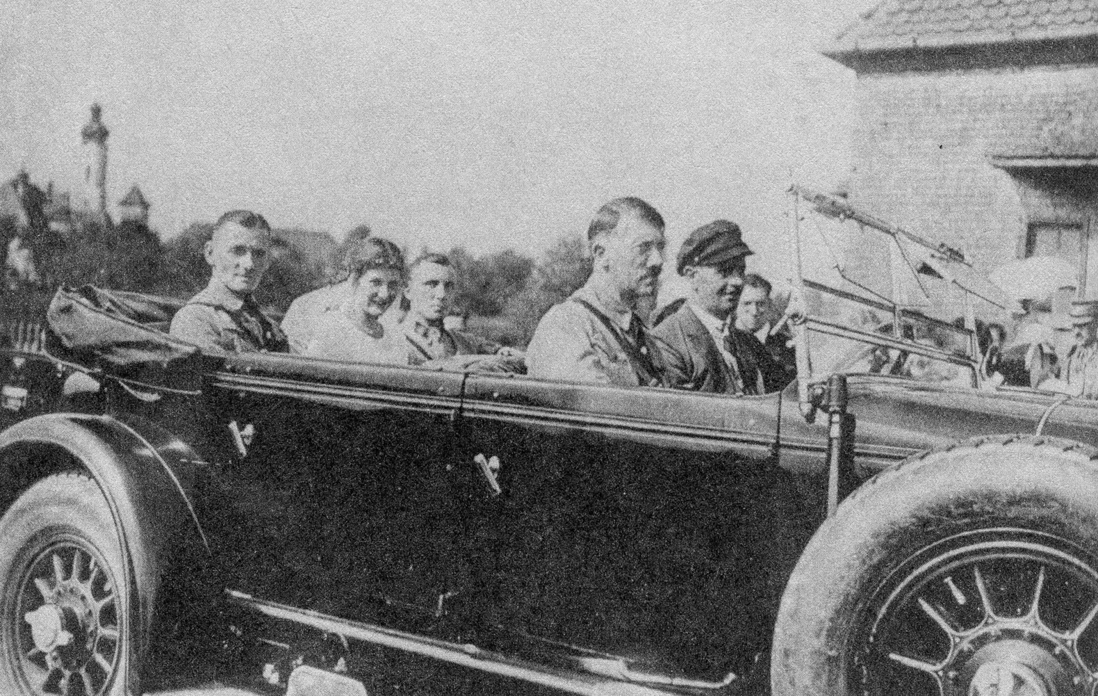 This picture shows her in the glow of Adolf Hitler, whose back is facing the camera.]
