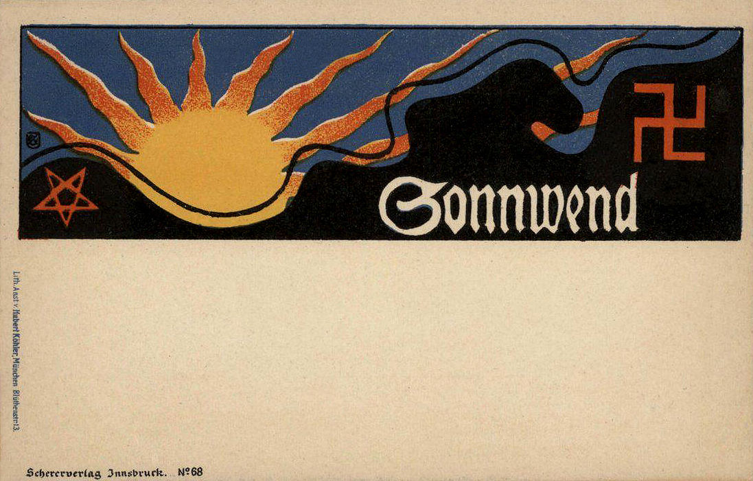 [Above: The top of an early German winter equinox festival postcard from Schererverlag, publisher of indigenous European religious-themed postcards.