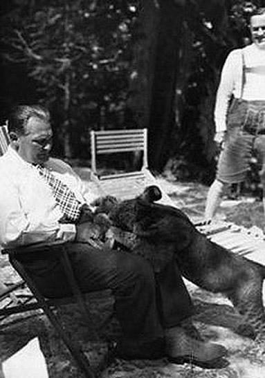 [Above: Julius Streicher being viciously attacked by two pitbulls at his home, circa 1930s.]