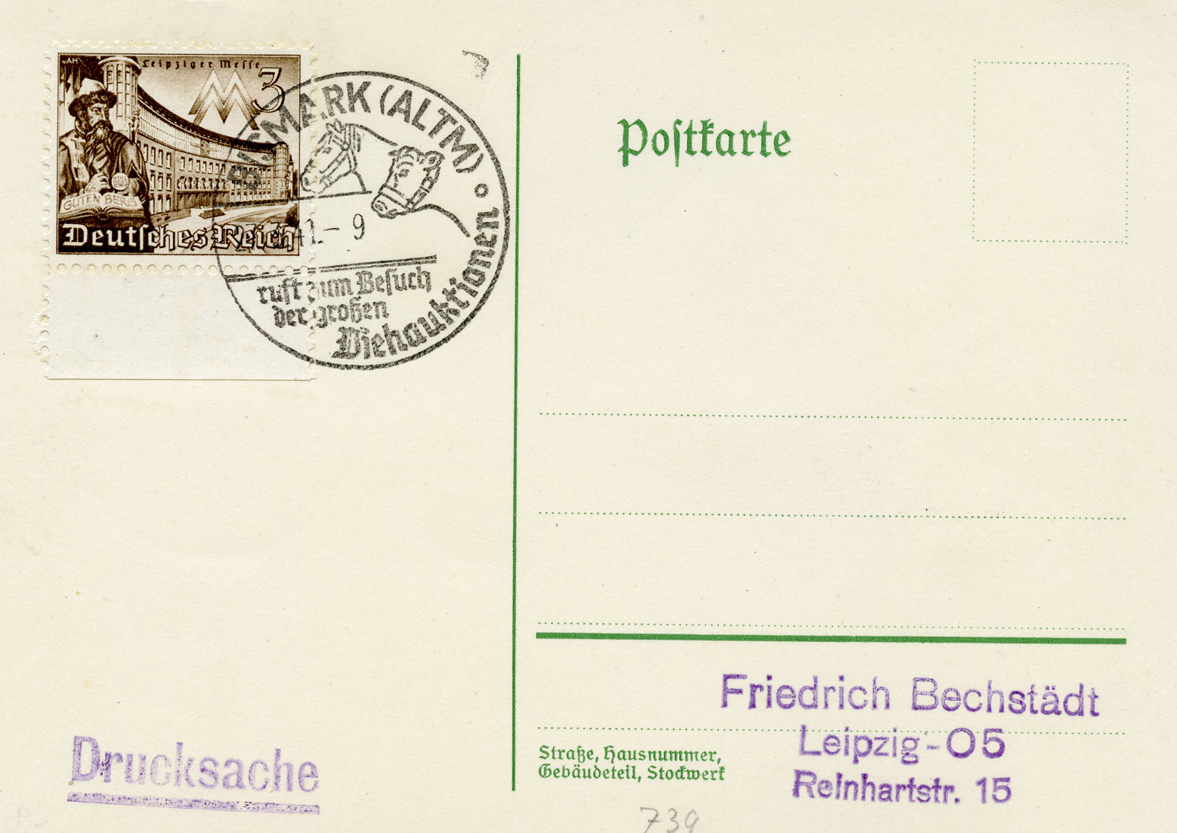 [Above: The back of the postcard has a special postmark, from May 13, 1939, seen here.]