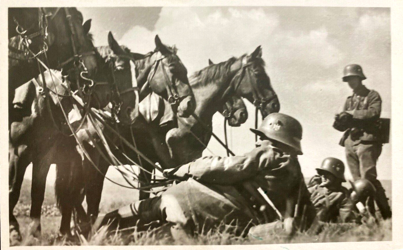 [Above: I'd heard of horse gasmasks but never horse helmets! Those Germans thought of everything...]