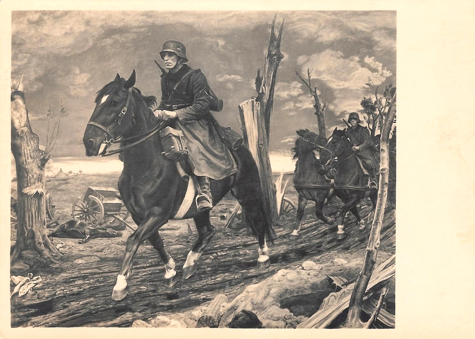 [Above: 'The Dispatch Rider' - drawing by Ahlers, publisher Erich Gutjahr Bildverlag, Berlin]
