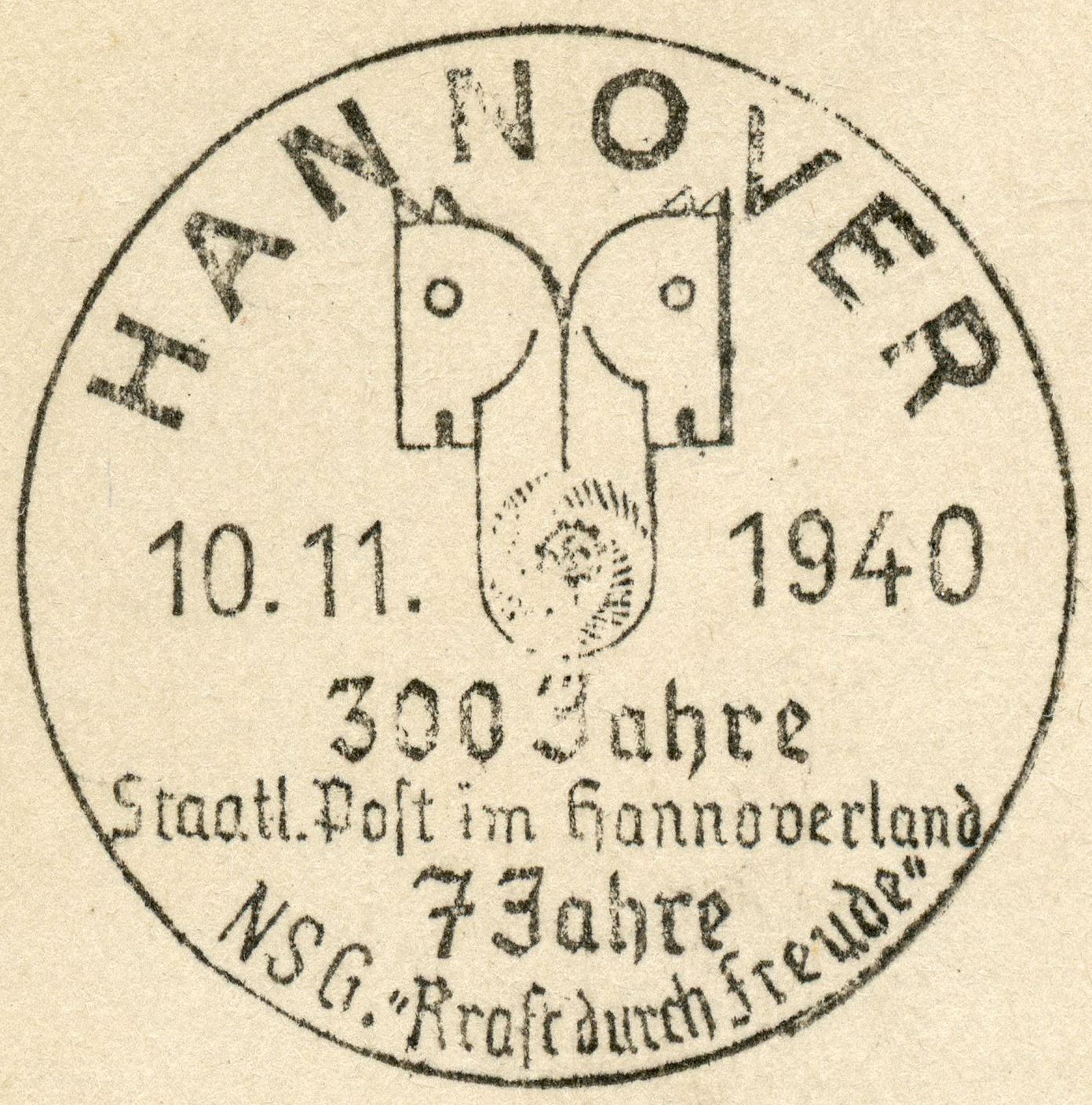 [Below: Strength Through Joy cancel from November 10, 1940.]