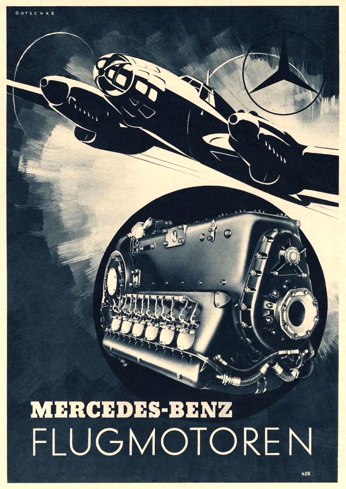 [Above: Mercedes-Benz engine for the Messerschmitt Bf 109 advertisement, 1940]