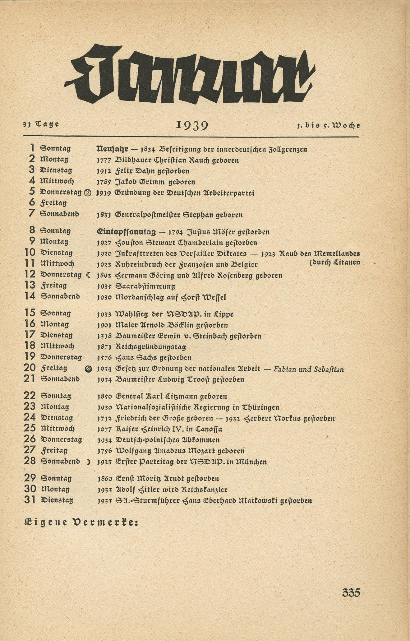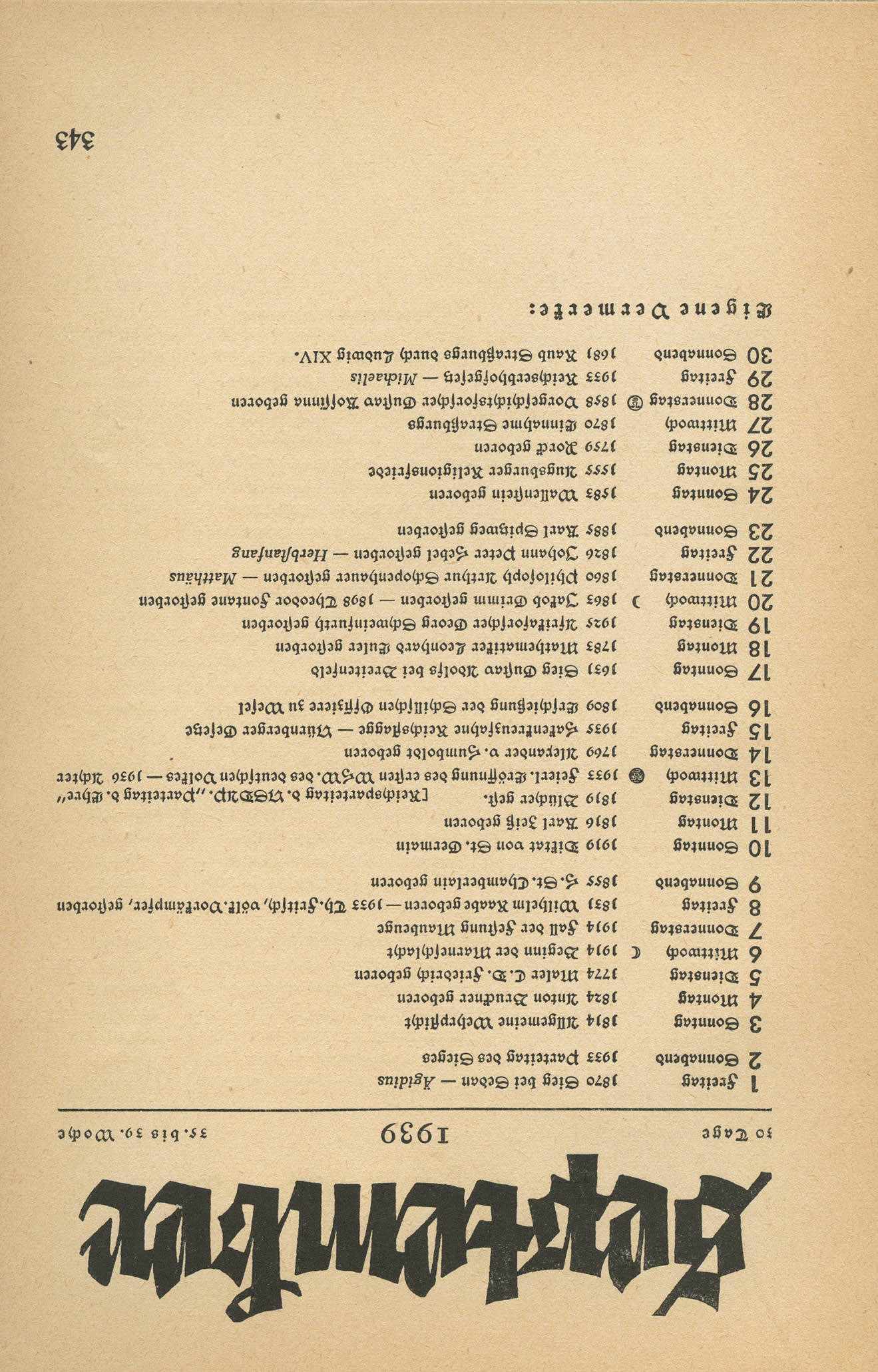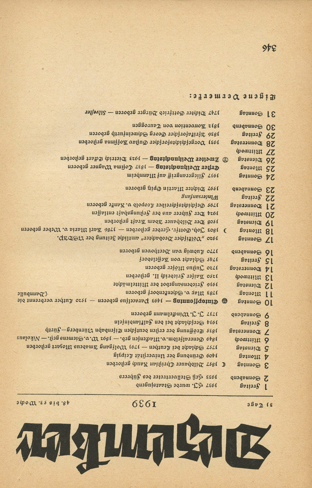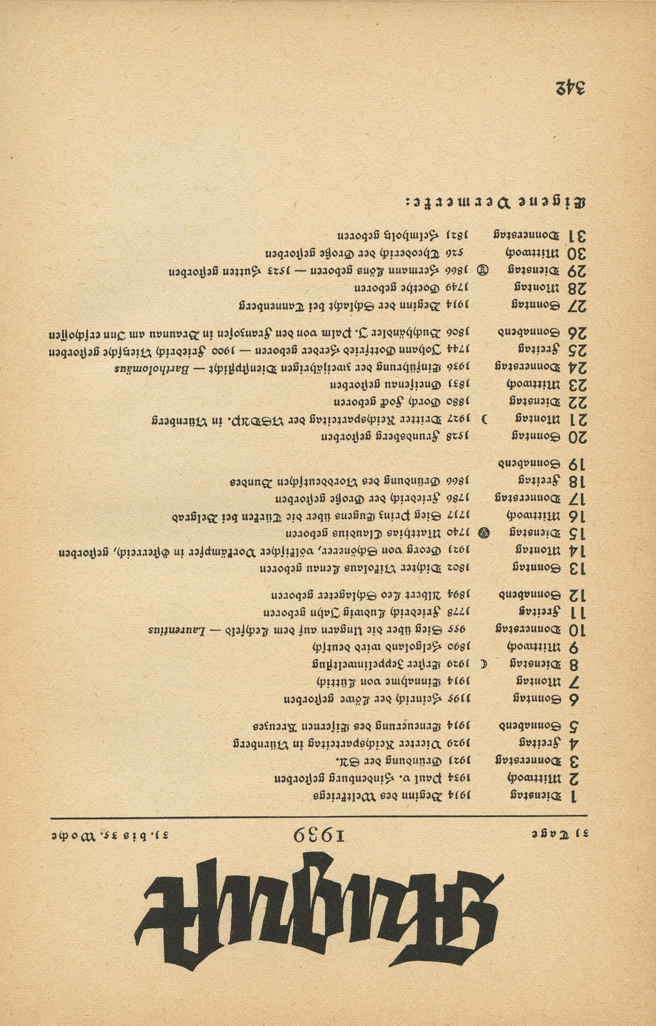 [Below: The following are pages of a National Socialist calendar. Needless to say, it is very interesting and informative.]