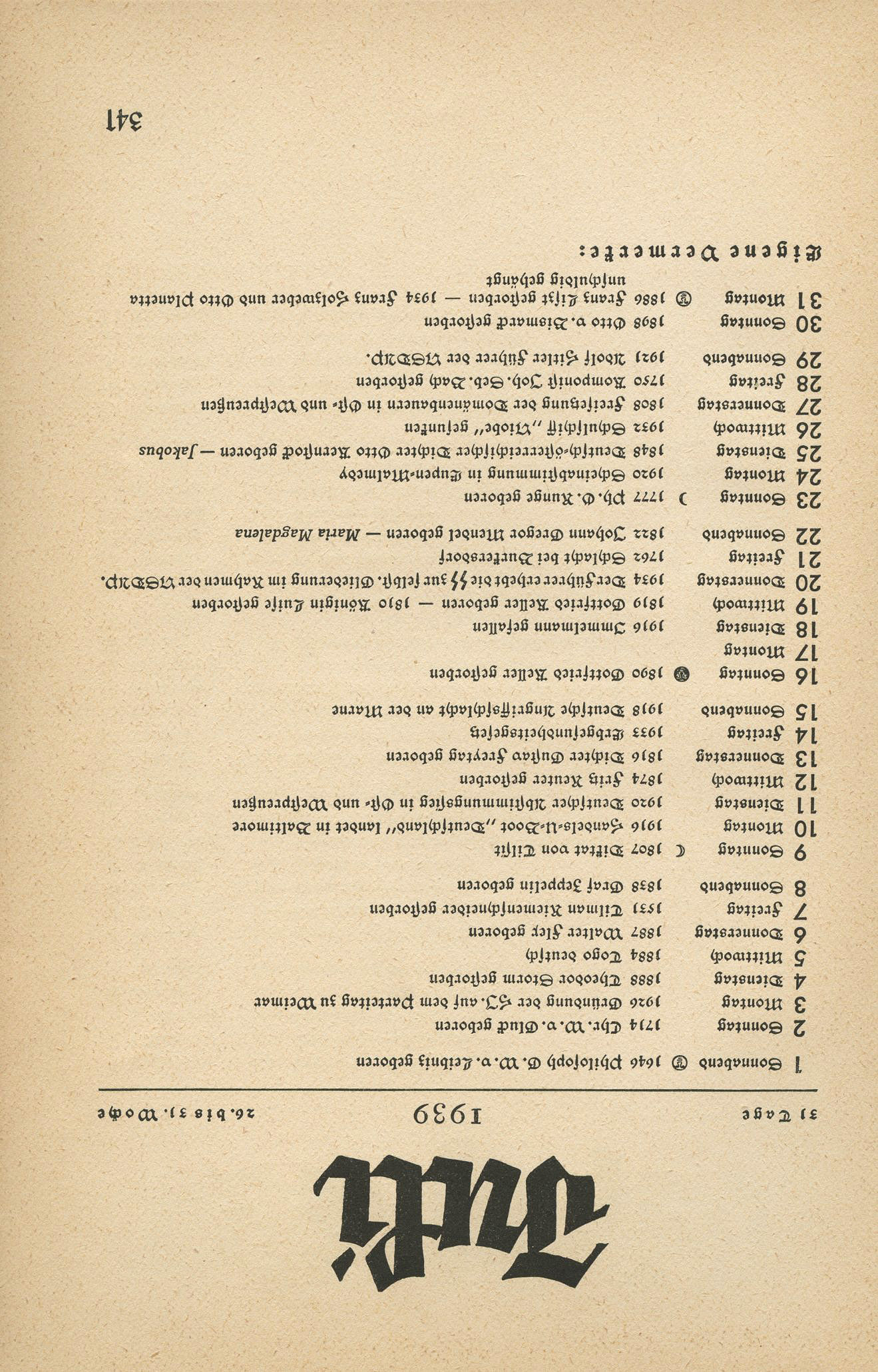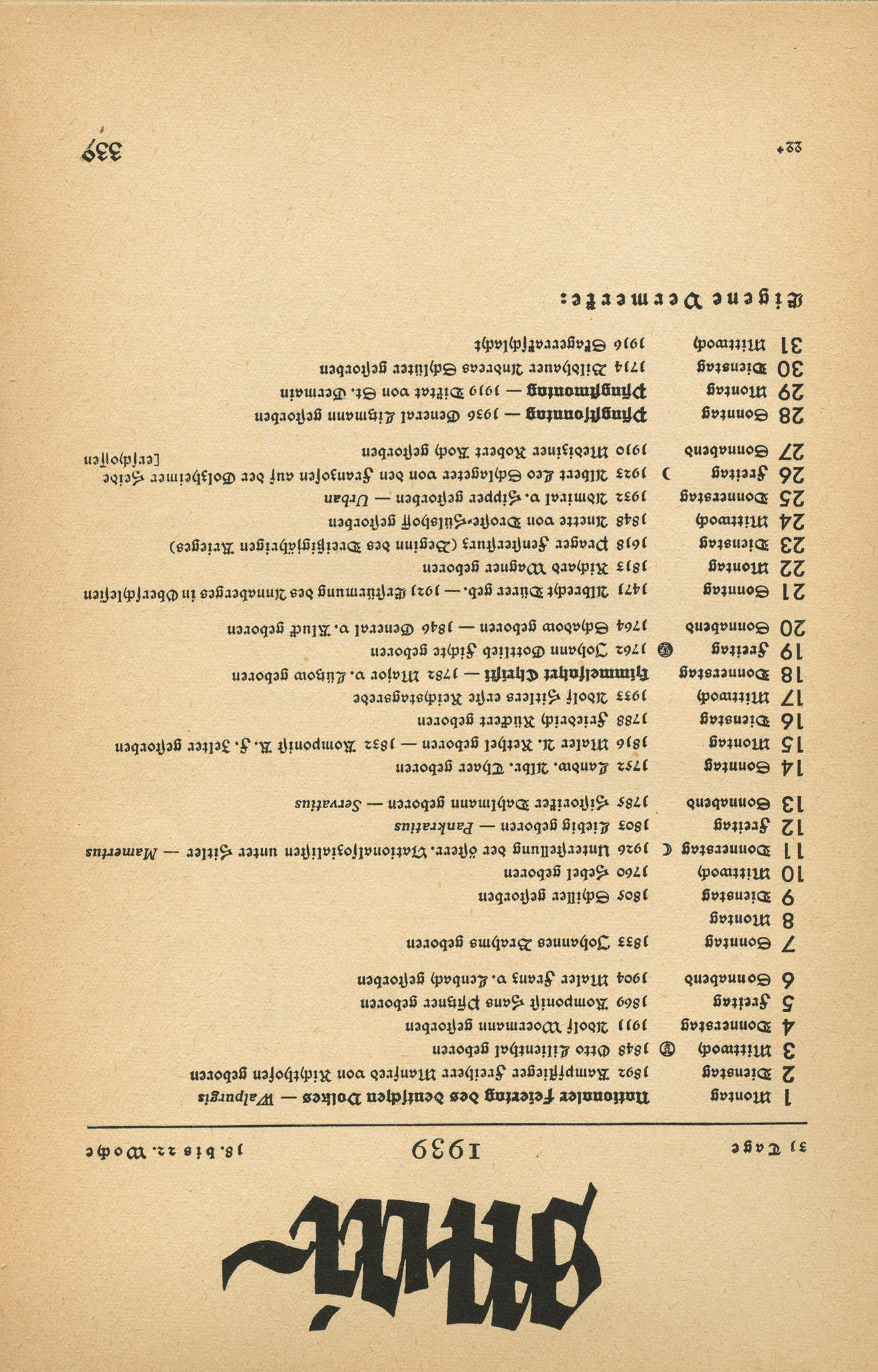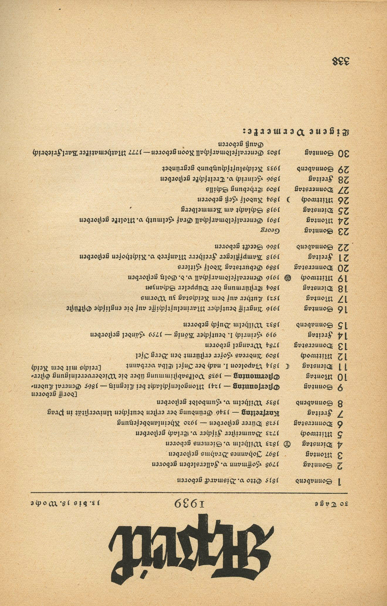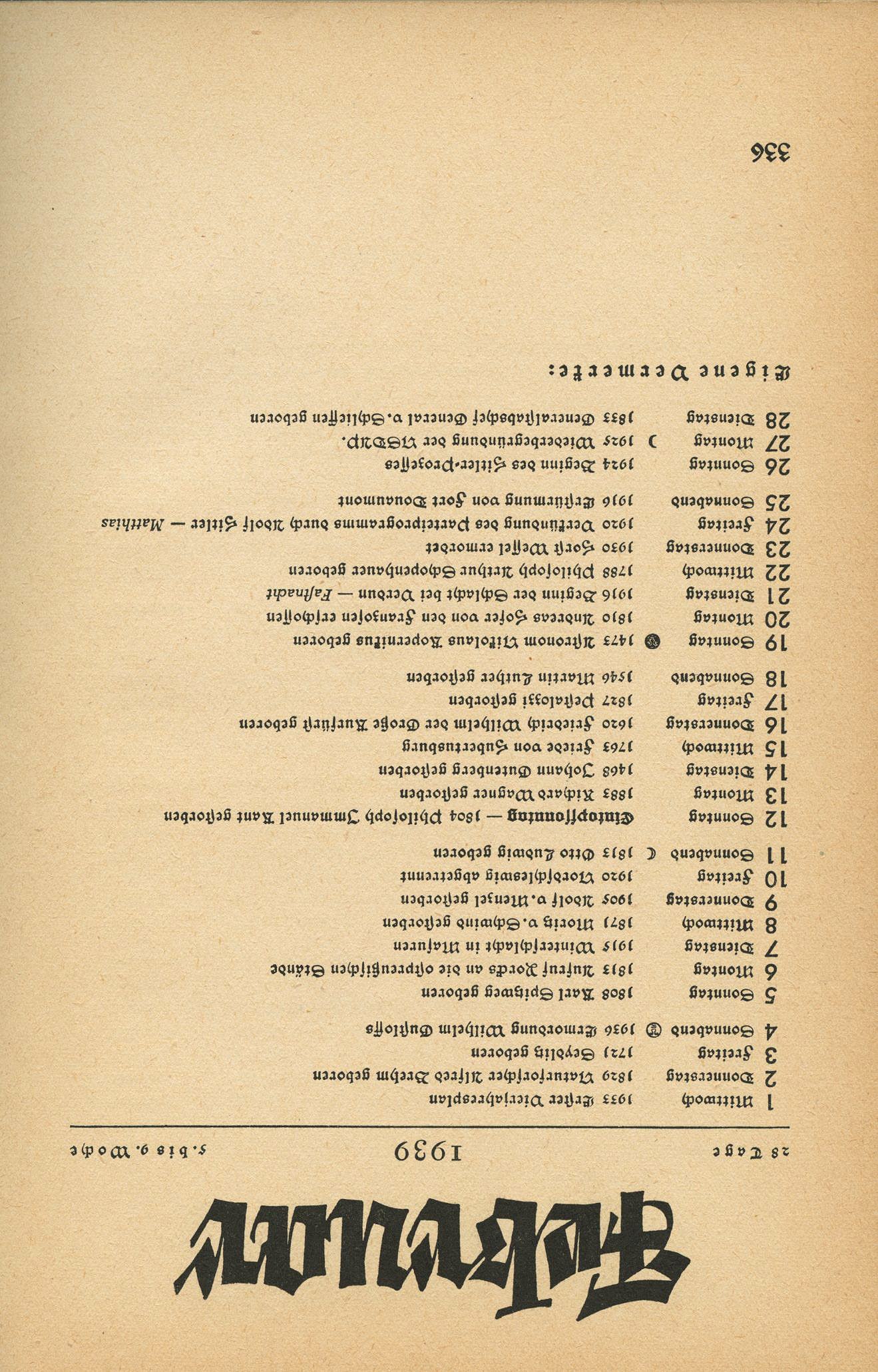 [Below: The following are pages of a National Socialist calendar. Needless to say, it is very interesting and informative.]