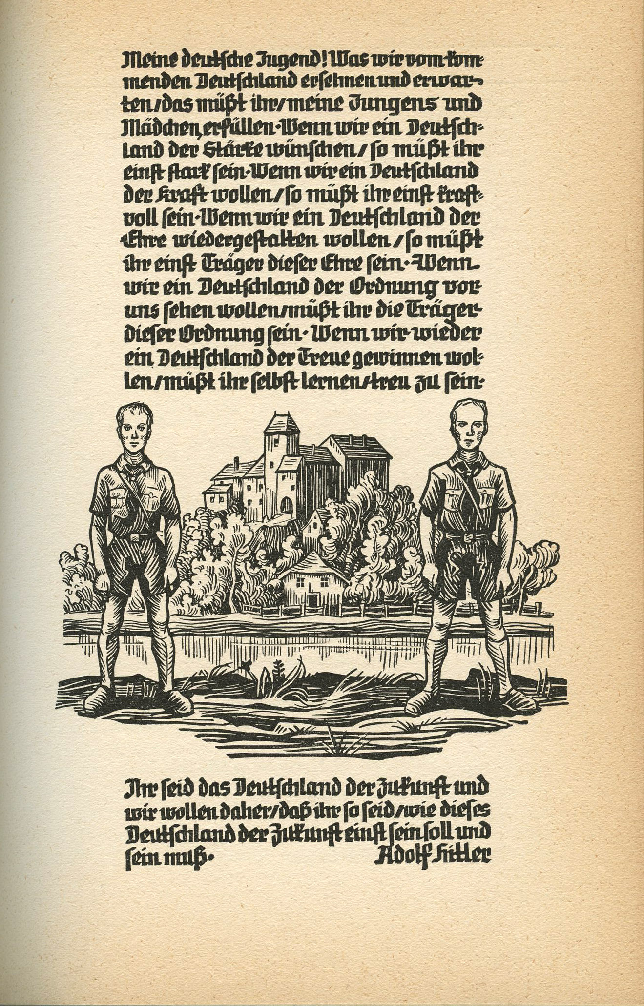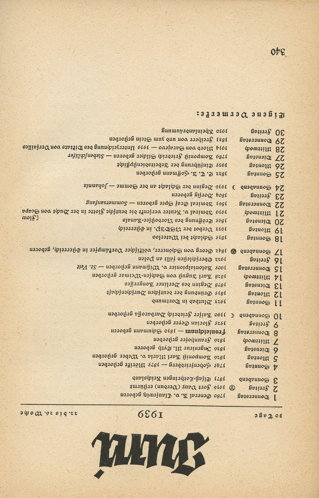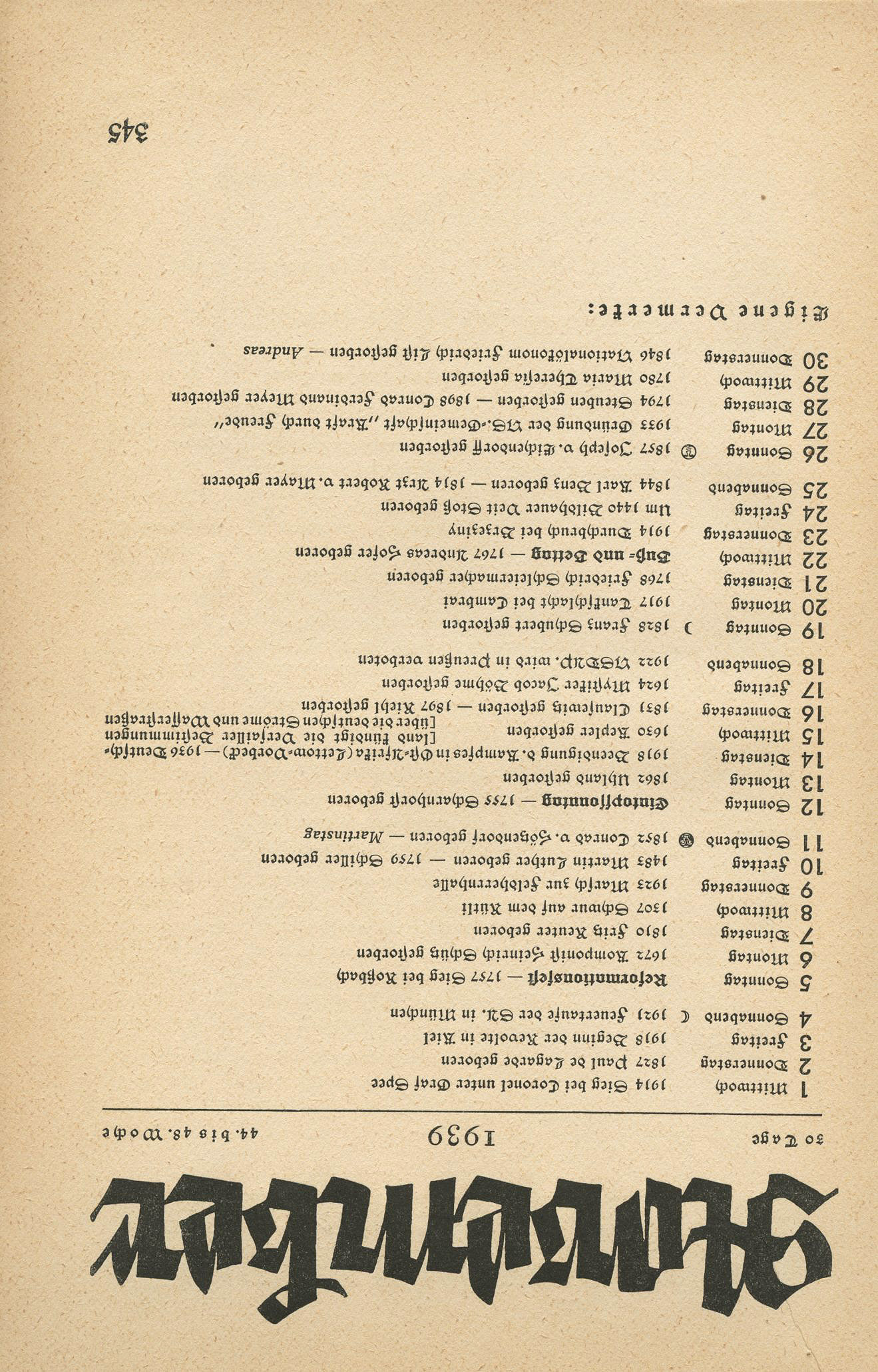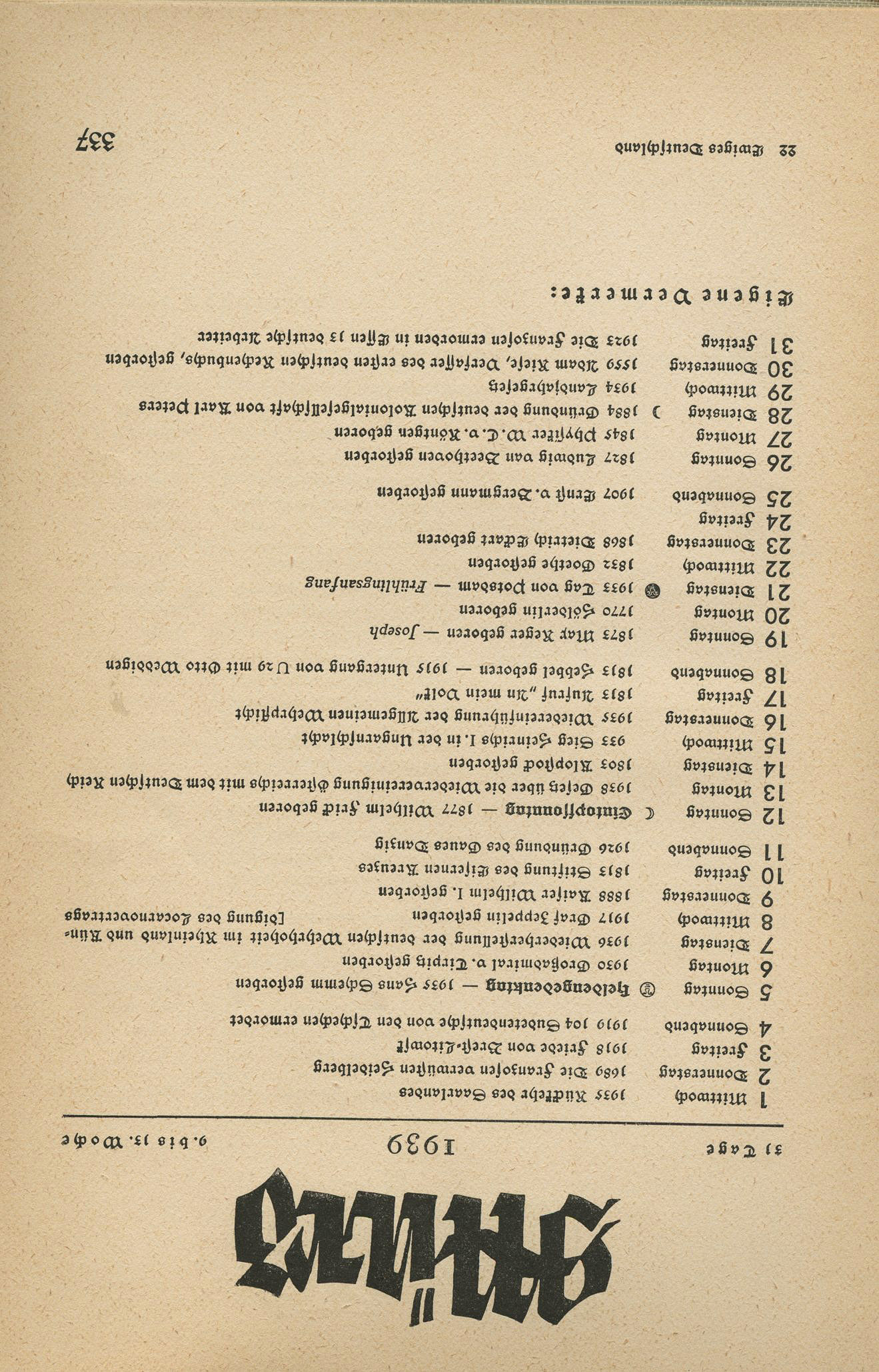 [Below: The following are pages of a National Socialist calendar. Needless to say, it is very interesting and informative.]