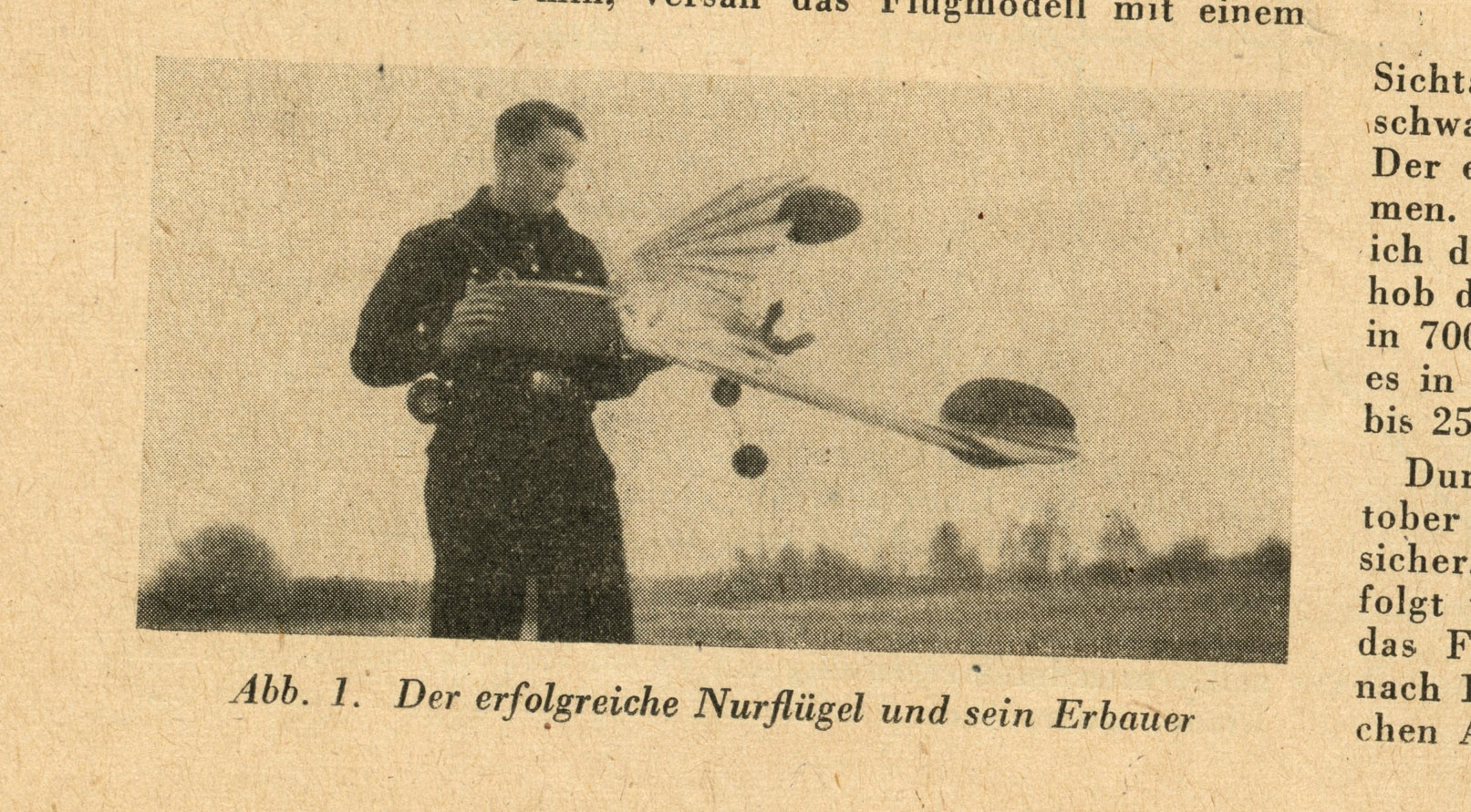 [Below: Page within - 'Der erfolgreiche Nurflügel und sien Erbaur' (The successful flying wing and its builder).]