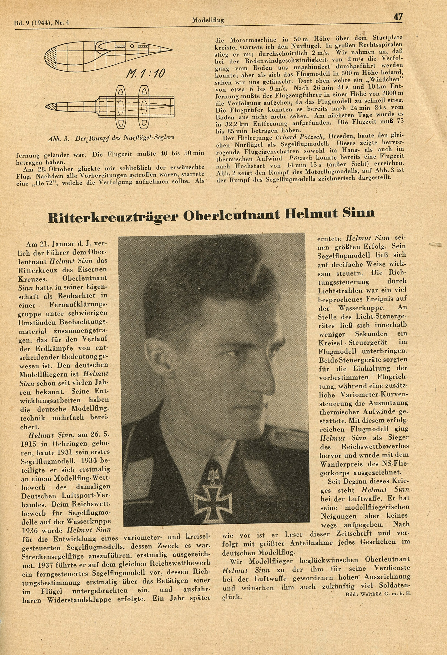 [Below: Page within - 'Ritterkreuzträger Oberteutnant Helmut Sinn' (Knight's Cross bearer First Lieutenant Helmut Sinn).]