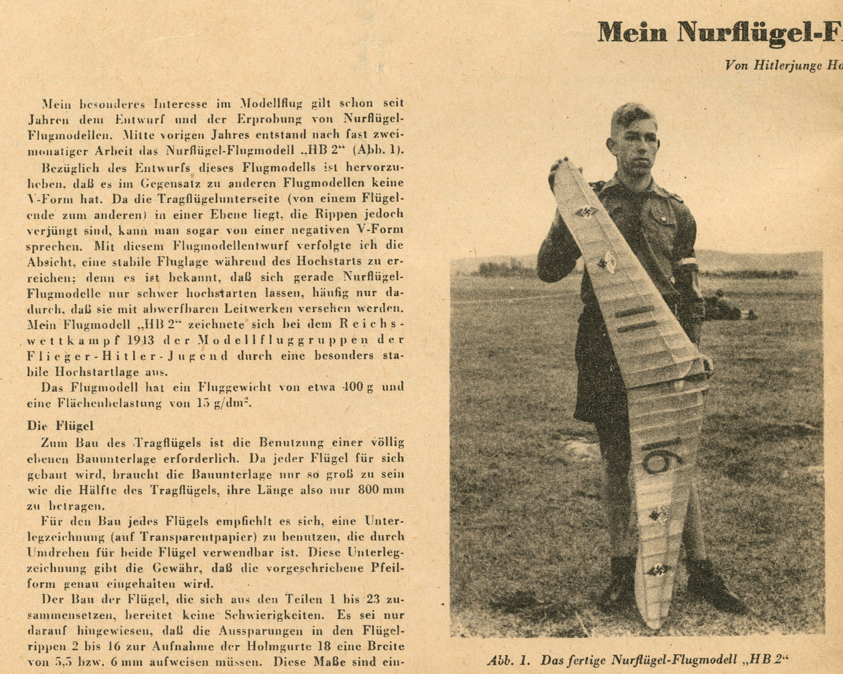 [Below: Page within - 'Das fertige Nurflügel-Flugmodell "H B 2"'