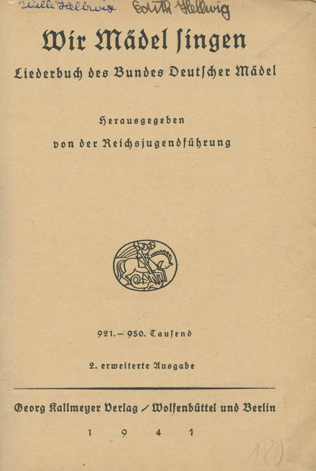 [Below: Opening page - This book is from 1941. Here with see Edith Hellwig has written in her name, but we also see a Willi Hellwig has also written in his. Perhaps her brother?]