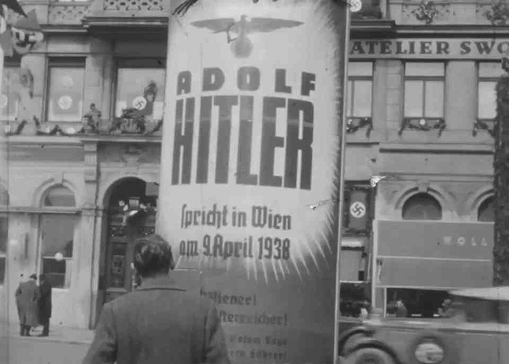 [Below: 1938 poster advertising an April 9th speech by Adolf Hitler in Vienna.]
