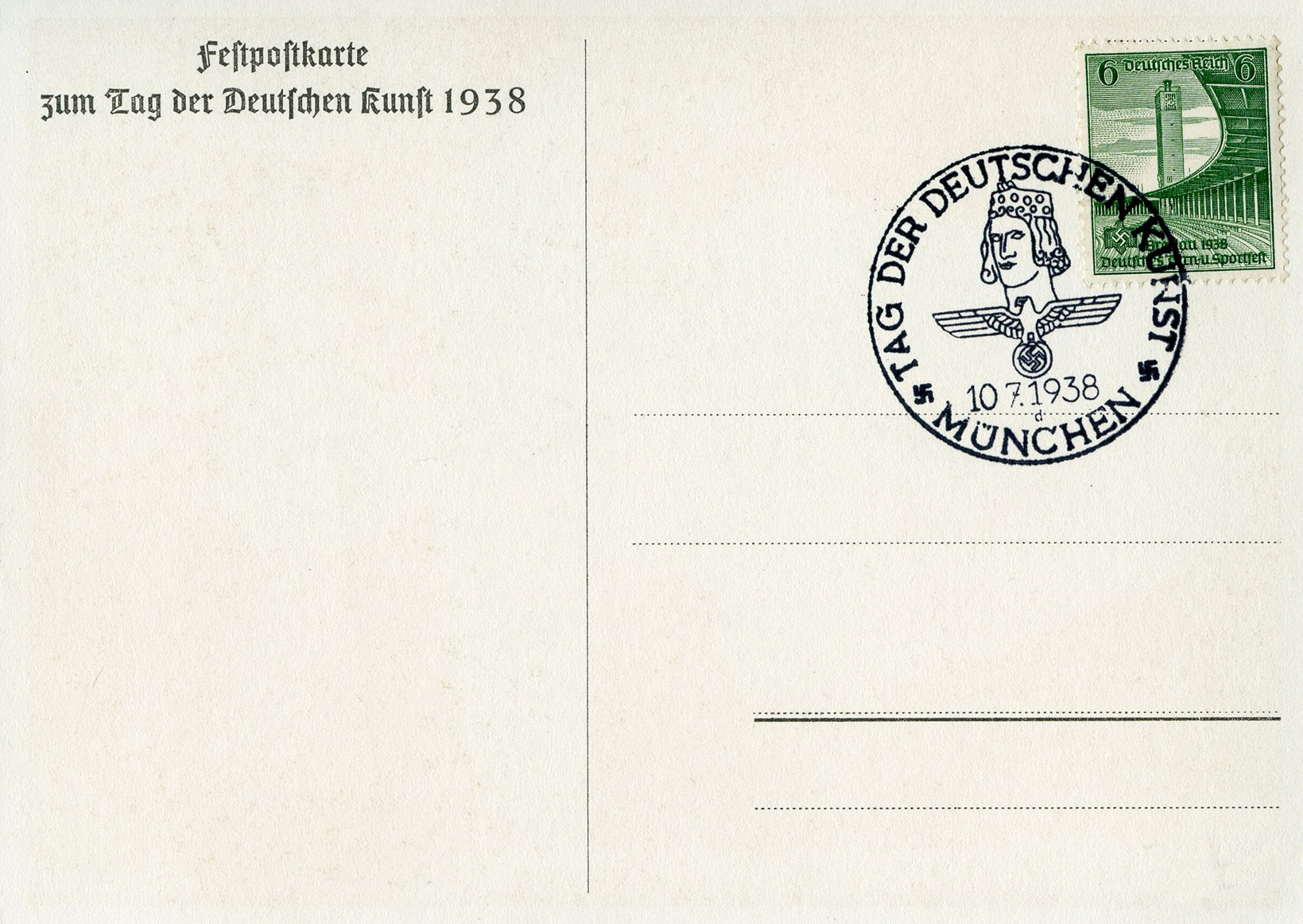 [Below: 1938 postcard celebrating the Day of German Art.]