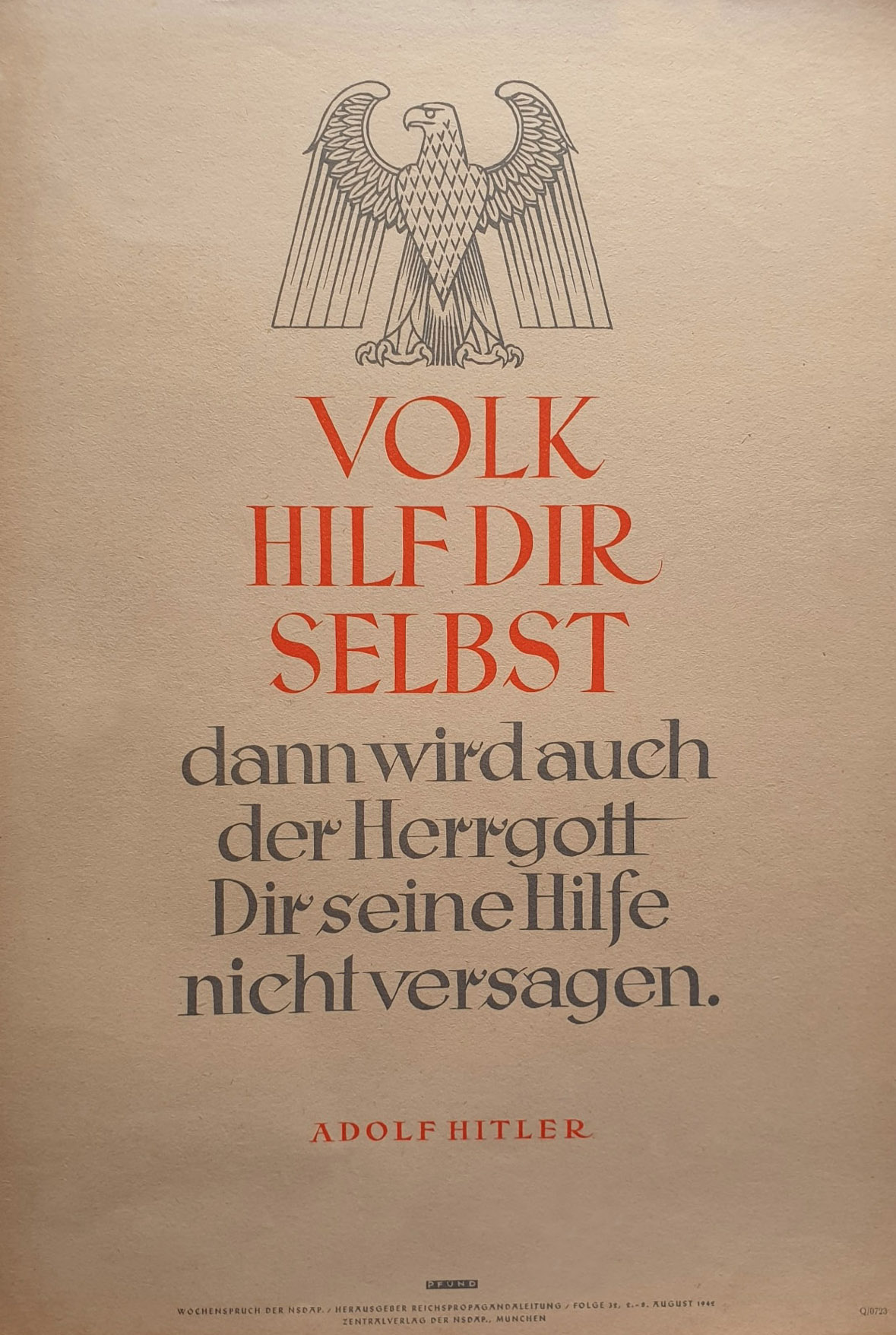 [Below: This poster, with a quote from Adolf Hitler, says: