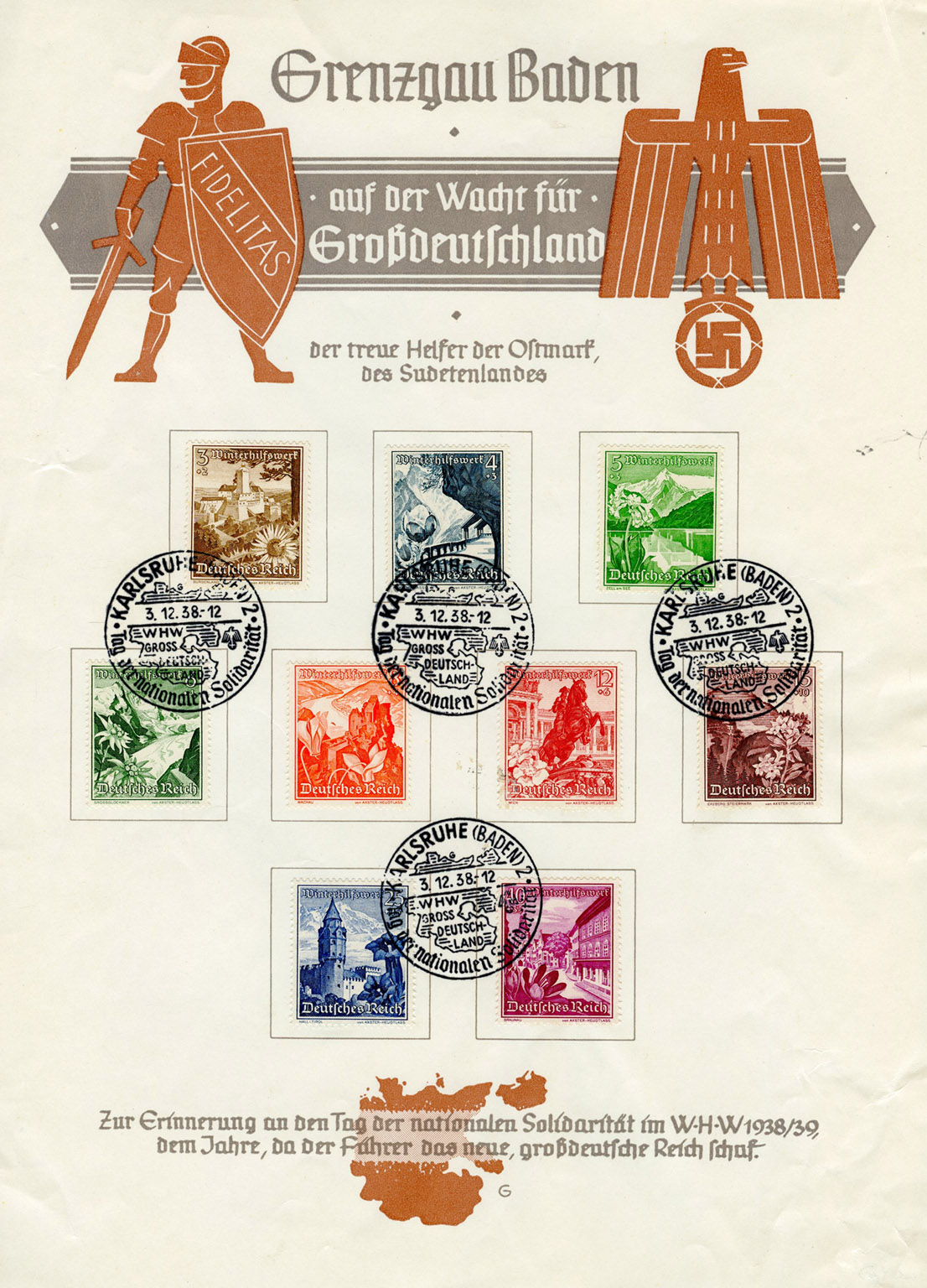 [Below: 1938/1939 Winterhilfswerk [WHW] (Winter Charity) souvenir sheet.]