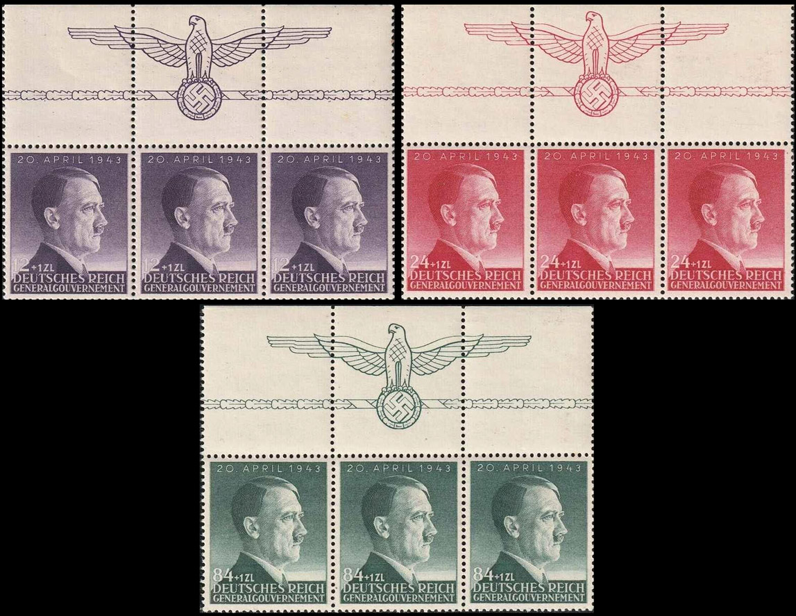 [Below: Stamps from 1943 from the General Government (Poland) with sheet selvage showing eagles.]