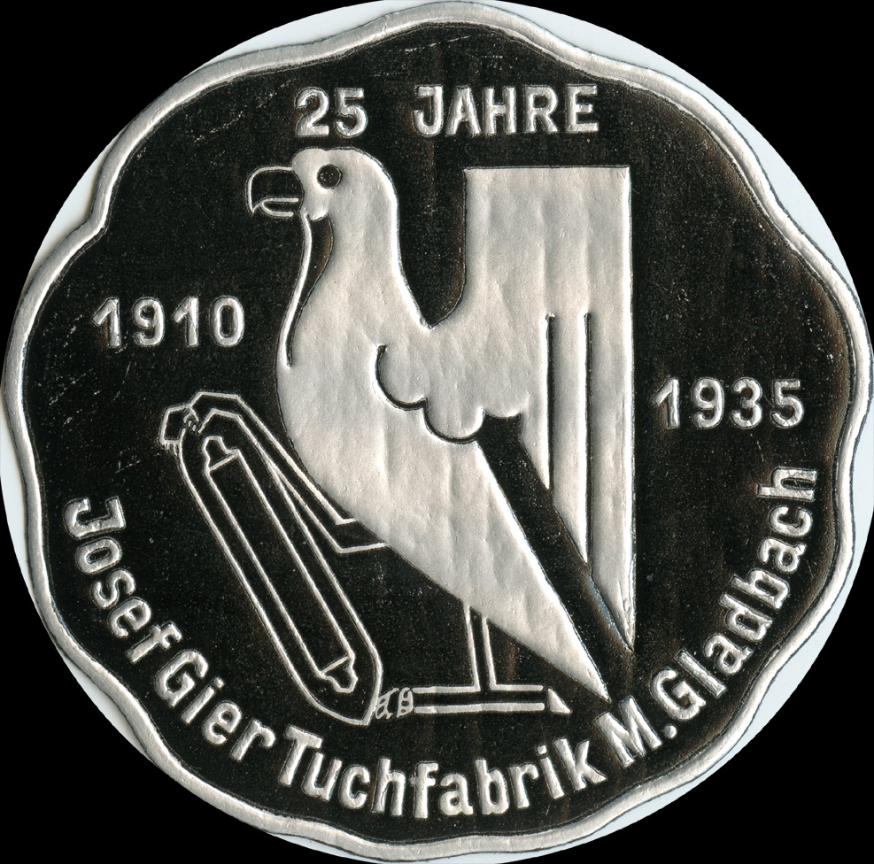 [Below: Here is a different foil advertising stamp from 'Josef Gier Tuchfabrik M. Gladbach', which was a clothing factory.]