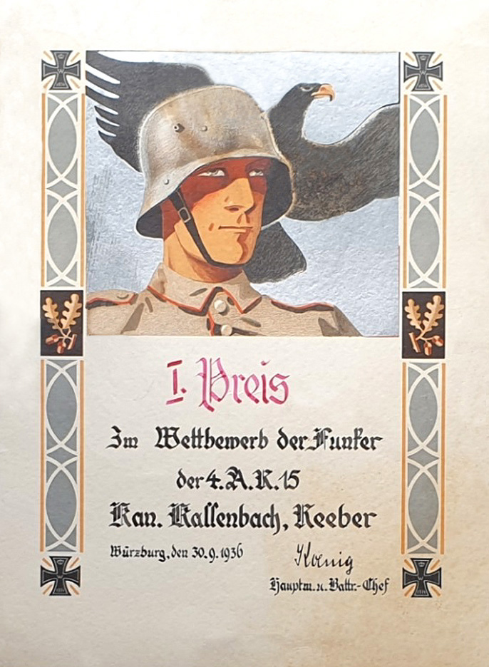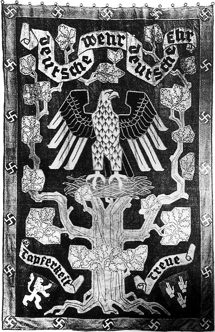 [Below: This beautiful tapestry says 'Deutsche Wehr Deutsche Ehr - Tapferkeit Treue' (German Army German Honor -