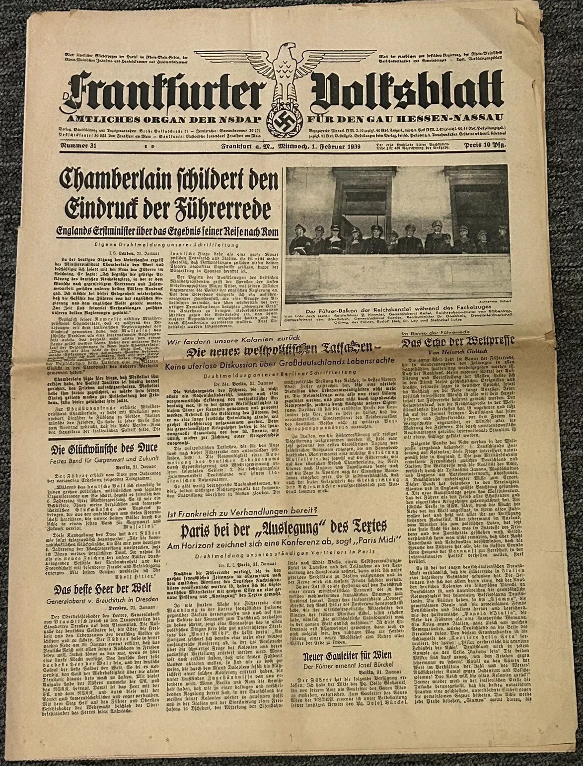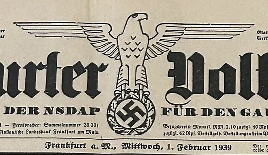 [Below: The Frankfurter Volksblatt, February 1939. This uses a very thin-winged eagle.]