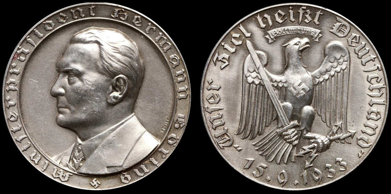 [Below: Silver commemorative coin featuring Hermann Göring.]