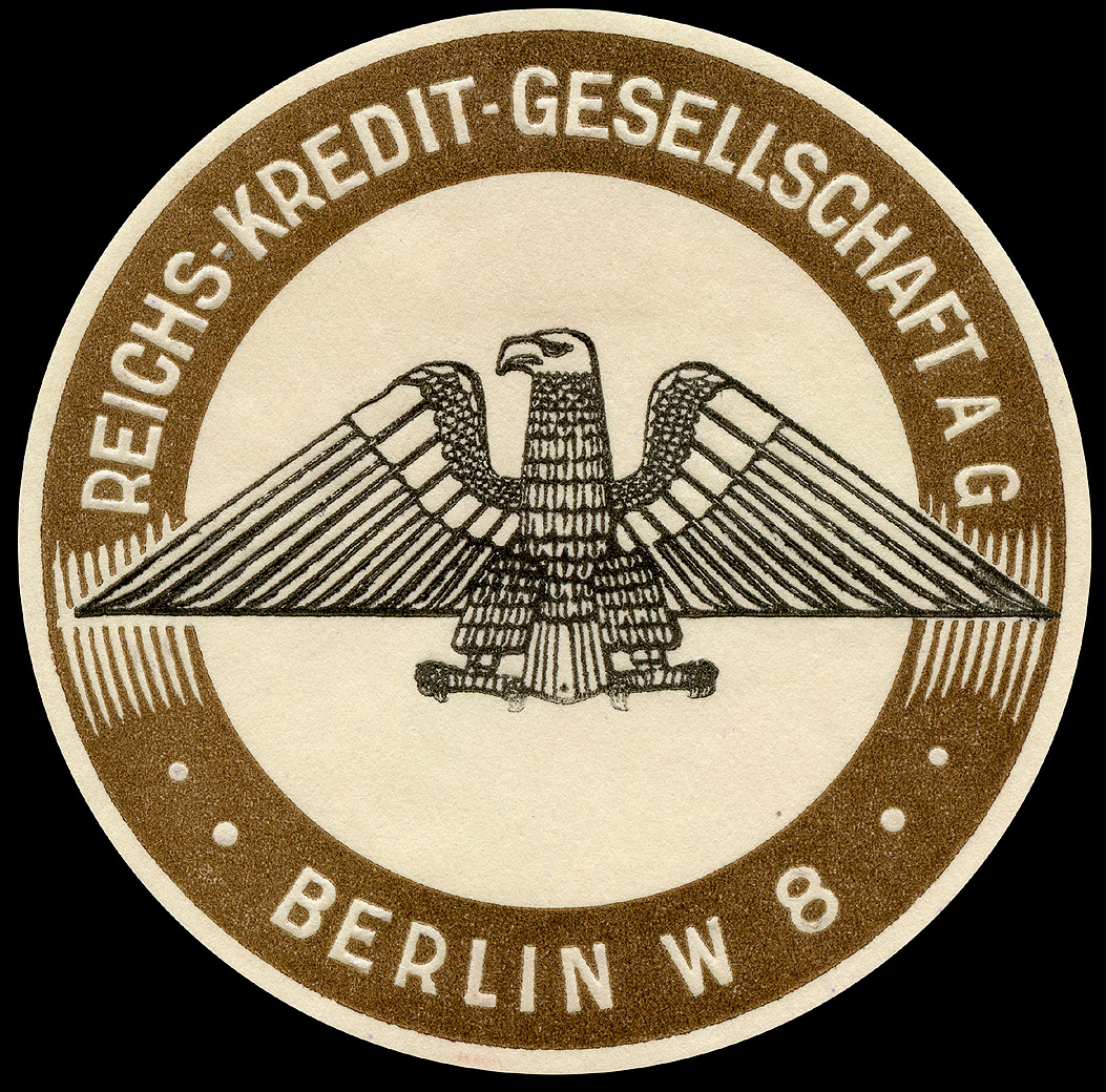 [Below: This large postage vignette says 'Reichs-Kredit-Gesellschaft' (Reich Credit Commpany).]