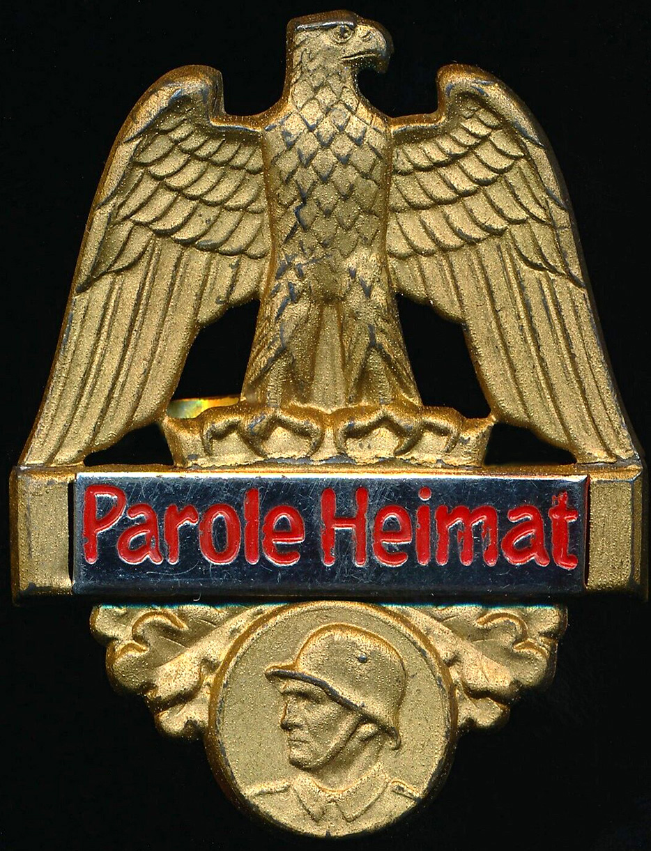 [Below: This pin says: 'Parole Heimat' (Homeland Motto).]