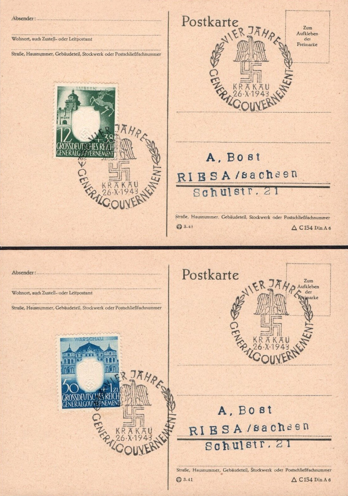 [Below: These two General Government (Poland) postcards say' Vier Jahre' (Four Years). They celebrate four years of German administration.]