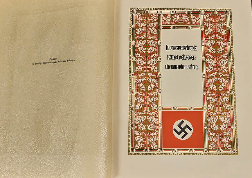 [Below: An inner page of a book from 1941 showing a Kriegsmarine eagle.]