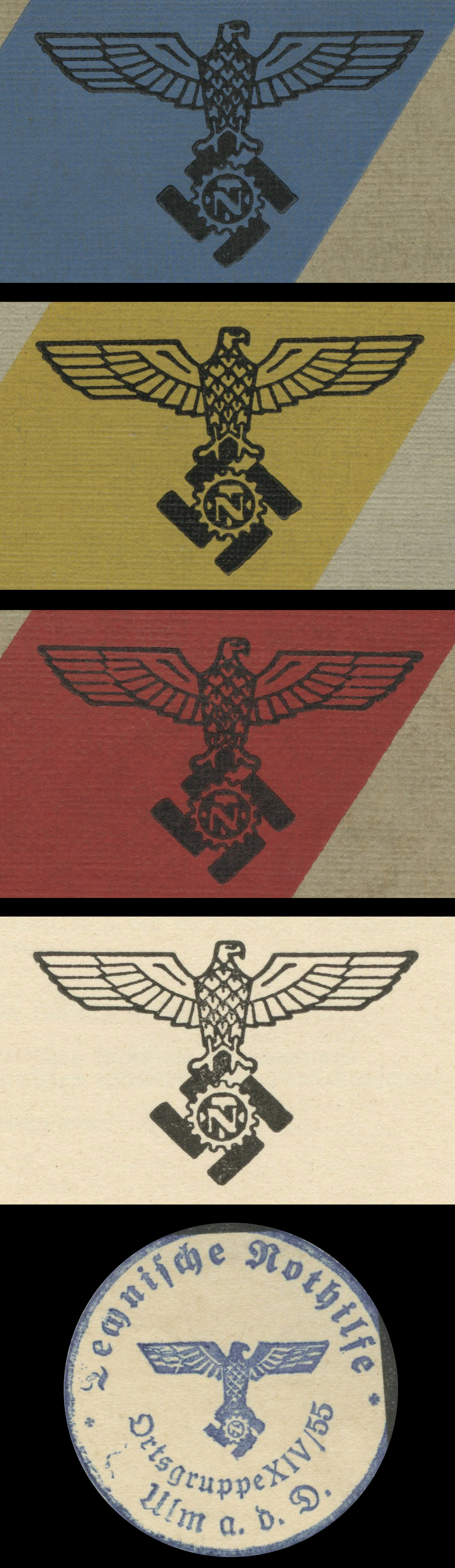 [Below: The eagles from the covers of four Technische Nothilfe (TENO) manuals, circa 1937-40. Technische Nothilfe means 'Technical Emergency Help' and was a volunteer emergency response unit in charge of technical civil defense.]