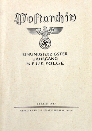 [Below: Postarchiv einundsiebzigster Jahrgang neue Folge, Berlin (Post archive seventy-first year new series, Berlin, 1943), 1943.]