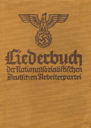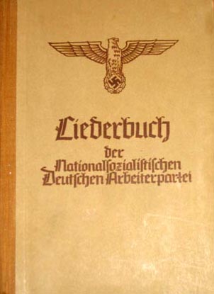 [Below: Liederbuch der Nationalsozialistischen Deutschen Arbeiterpartei (Songbook of the National Socialist German Labor Party).]