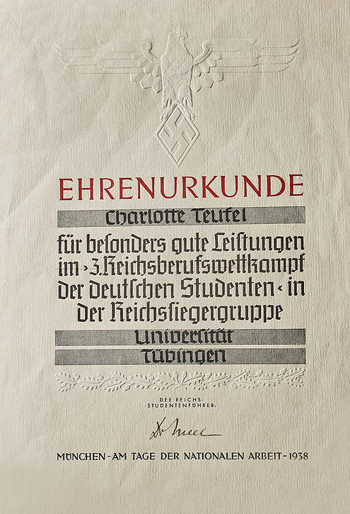 [Below: Vonder zur NSDAP (From the NSDAP), circa 1939.]