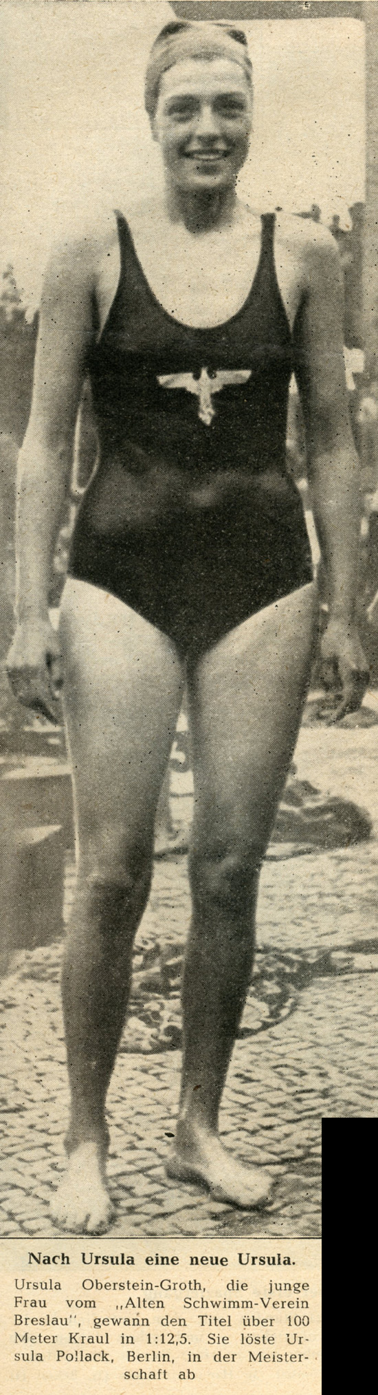 [Below: This picture is taken from the Berliner Illustrierte Zeitung, July 29 1943, number 30. Note the NSB (National Socialist Student League) eagle on her bathing suit.]