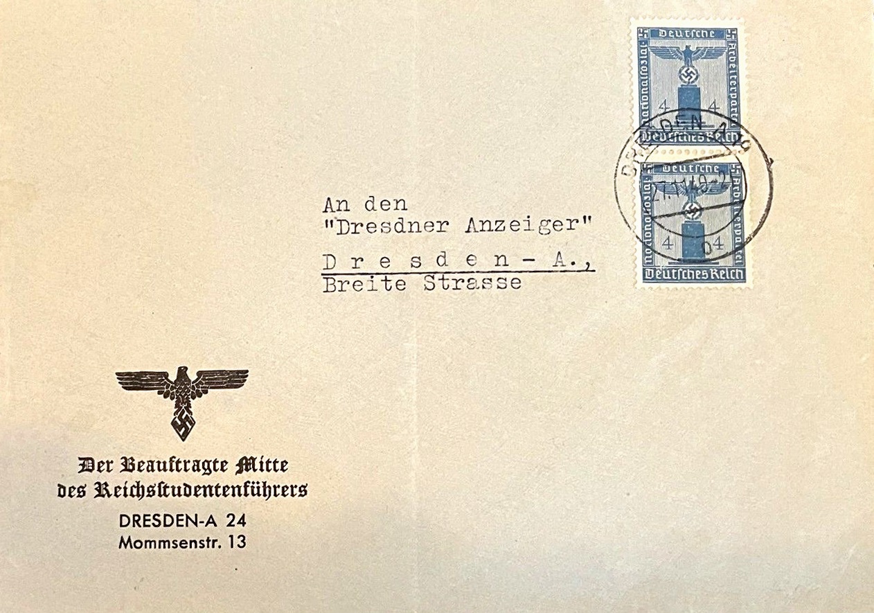 [Below: Here is an envelope from the NSB (National Socialist Student League).]
