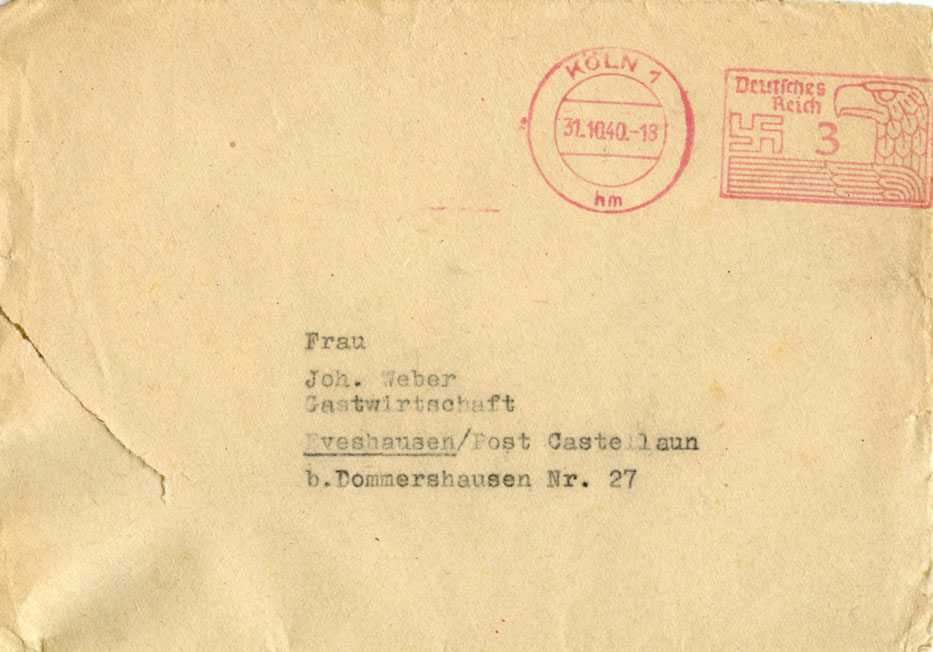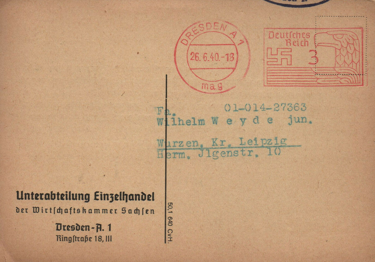 [Below: Another example of meter mail, this one is from Dresden. June 26, 1940.]