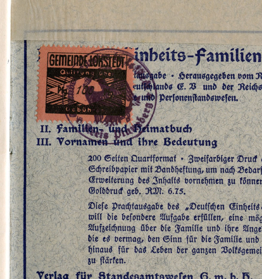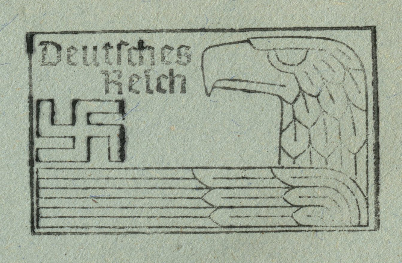 [Below: Within the Ahnenpass (Ancestral Passport). Here is some sort of strange stamp... I've collected every kind of Third Reich stamp in existence and I've never seen this one before.]