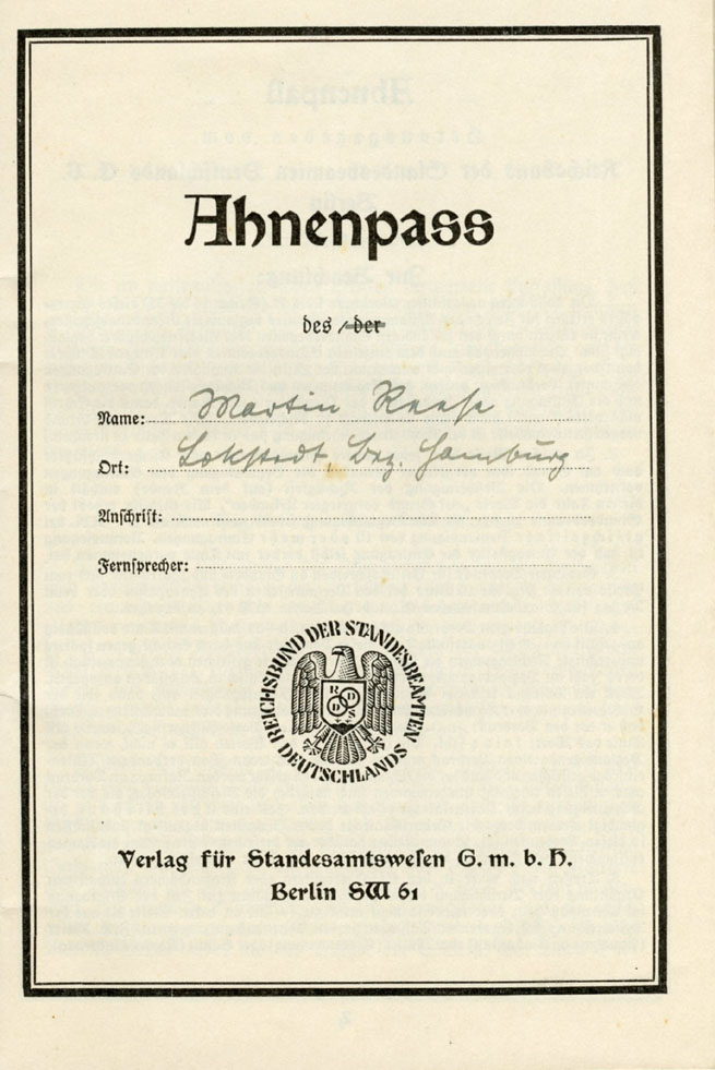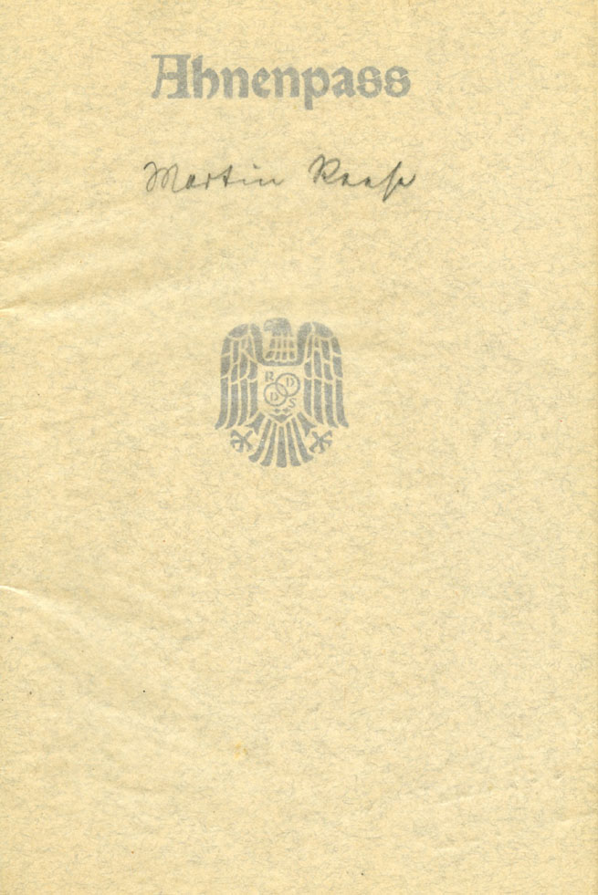 [Below: Within the Ahnenpass (Ancestral Passport).]