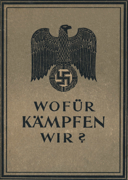[Below: An interesting looking eagle on this book cover titled 'Wofür Kämpfen Wir?' (What are We Fighting For?).]