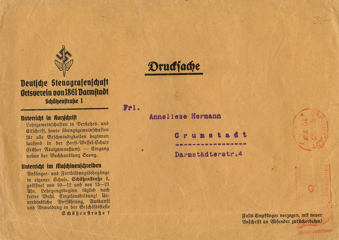 [Below: Here is an envelope from the Deutsche Stenografenschaft. Click to enlarge.]