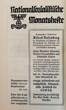 [Below: Nationalsozialistische Monatshefte (National Socialist Monthly Bulletin)]