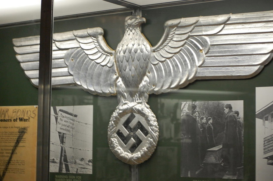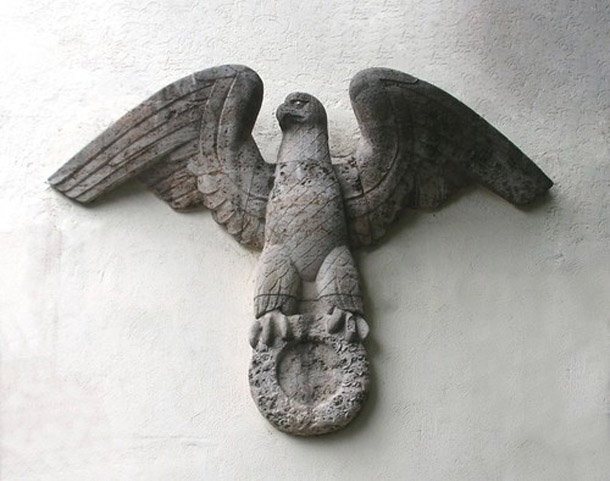 [Below: Here is a 'de-nazified' eagle with its swastika removed. What a hateful, racist bird!]
