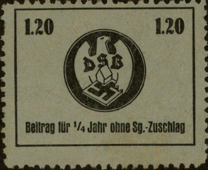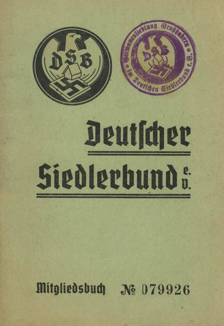 [Below: Dues stamps within the German Homeowner's Association (DSB) membership book.]