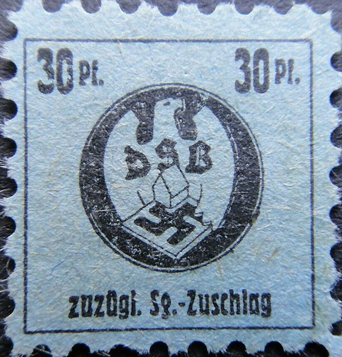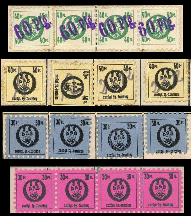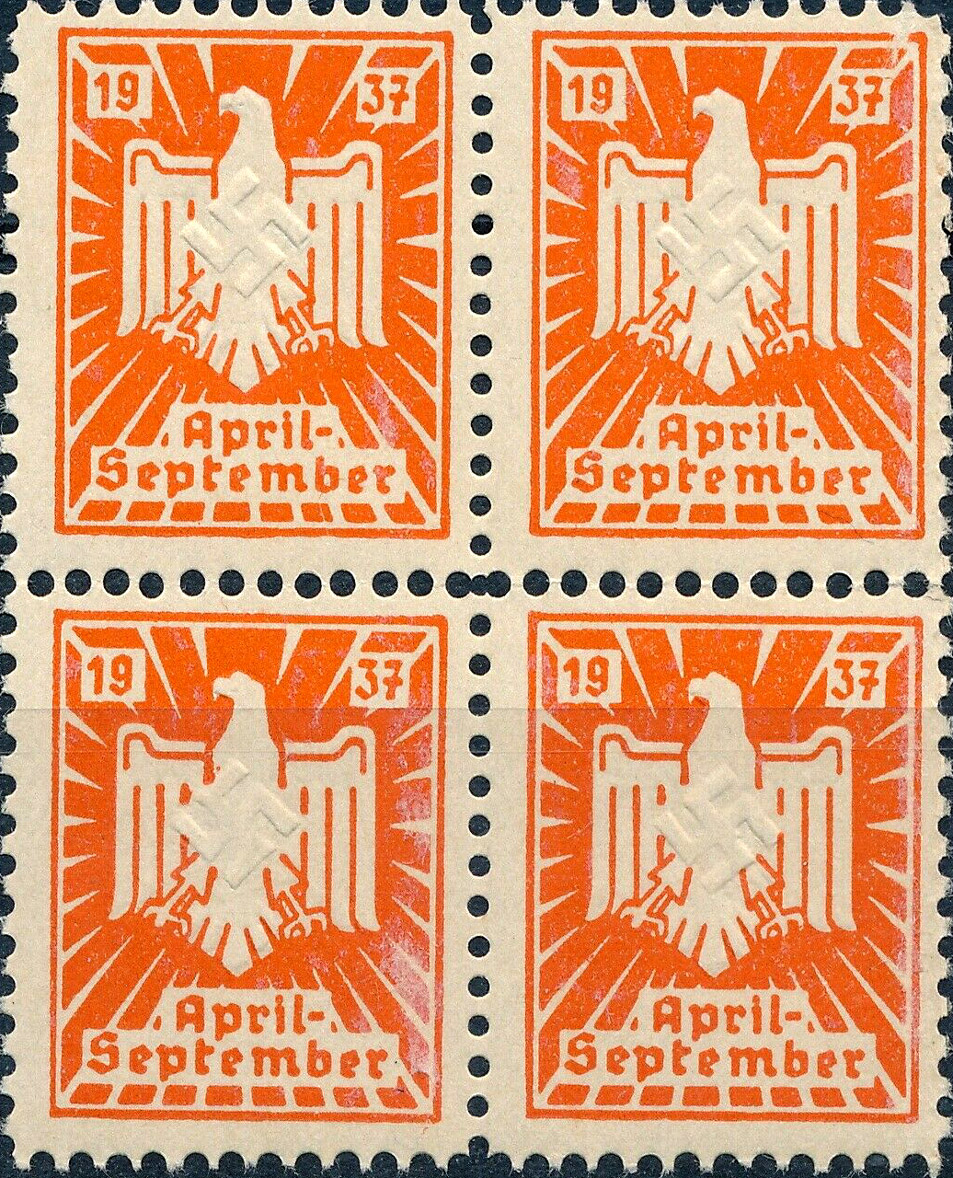[Below: Here is a 1937 block of four stamps from the Nationalsozialistischer Reichsbund für Leibesübungen (National Socialist League of the Reich for Physical Exercise). That is one long name!]