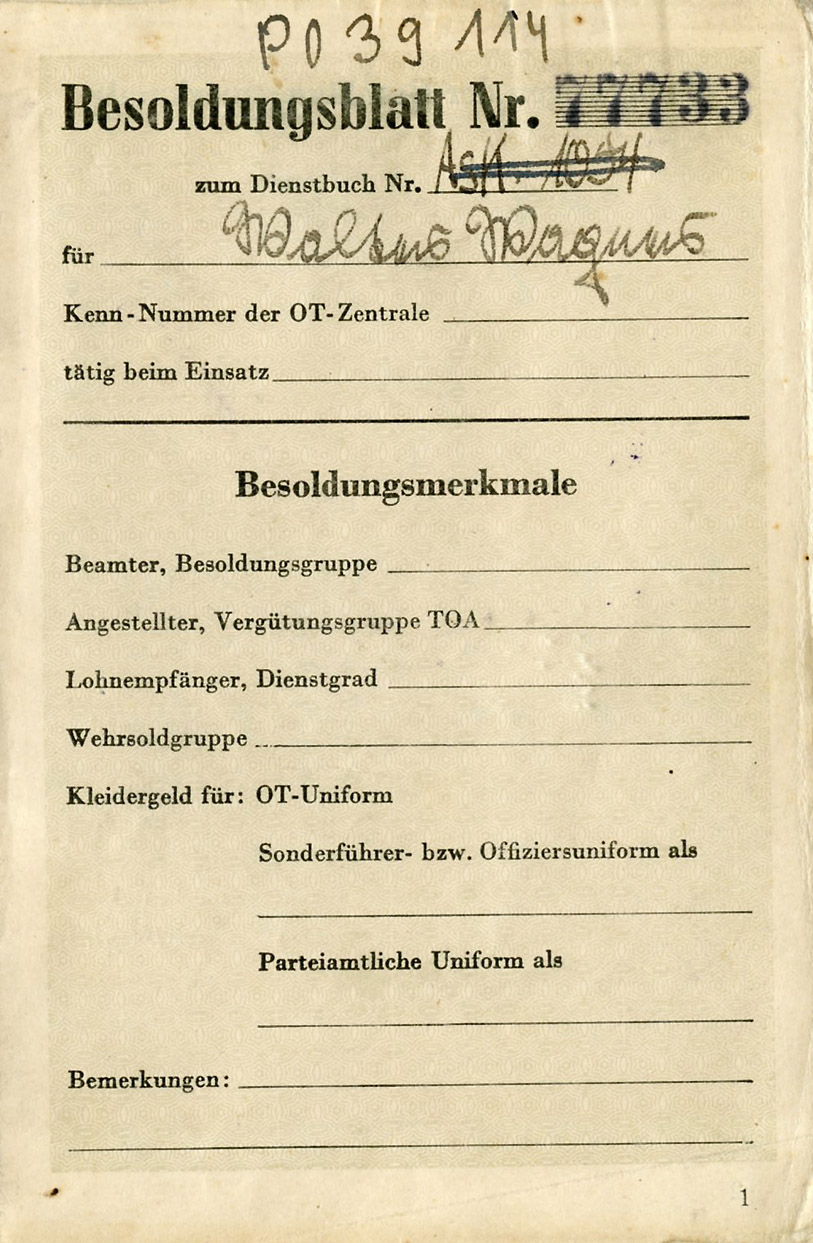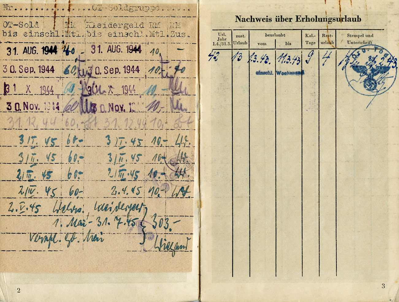 [Below: Here's a Todt Organization salary register from 1943-45. This has something to do with money for clothing. For such a huge organization material from this group seldom surfaces.]