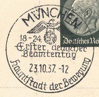 [Below: This postcard, canceled in Munich on October 23, 1937, says: