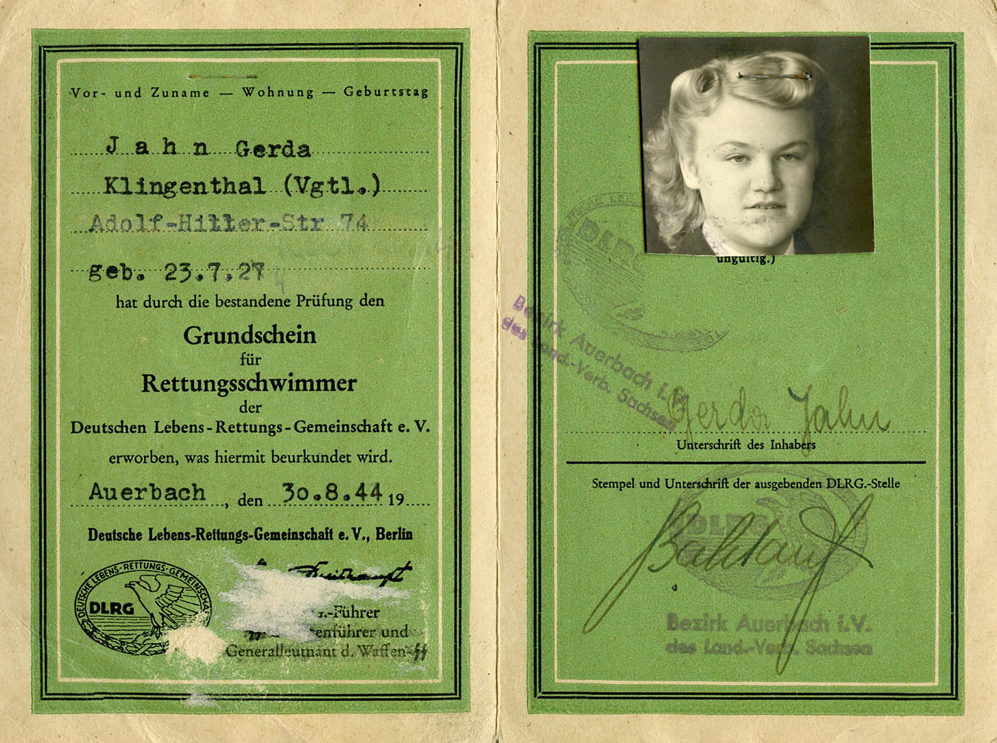 Okay, let's look at Gerda Jahn Klingenthal. Check it out she lives on Adolf Hitler street! How cool would that be? Unfortunately there is a piece of paper stuck to the bottom part with the leader's signature, but I wonder why this guy was in the Waffen-SS and head of the German Life Saving Association? Hmmm...]